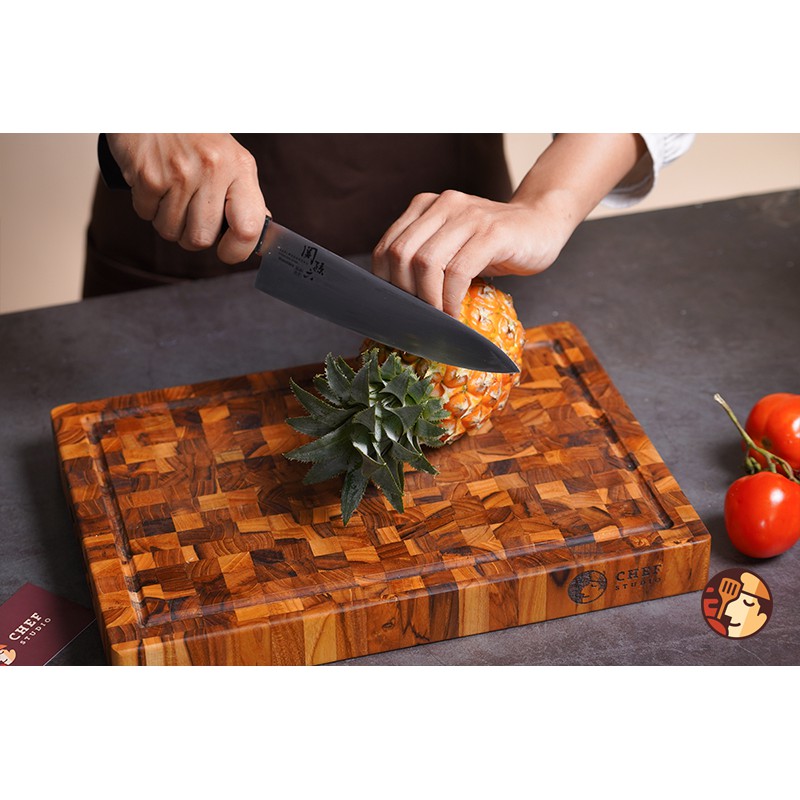 Thớt gỗ giá tỵ được sản xuất từ nguyên liệu gỗ Teak có giá trị cao, phẩm chất gỗ tốt có khả năng kháng nước và một số loại côn trùng hại gỗ, thớt gỗ Teak chữ nhật được sản xuất bằng cách kết hợp kỹ thuật sản xuất thớt gỗ trên dây chuyền công nghệ hiện đại với phương pháp sản xuất gỗ ghép sớ lật hay còn gọi là kiểu ghép Endgain, đây là loại thớt gỗ cao cấp rất được ưa chuộng ở nhiều nước thuộc Châu Âu, Mỹ. Hiện trong nước nhiều công ty sản xuất thớt gỗ ứng dụng công nghệ sản xuất thớt gỗ teak ghép sớ lật theo đơn đặt hàng xuất khẩu của nhiều khách hàng có nhu cầu.