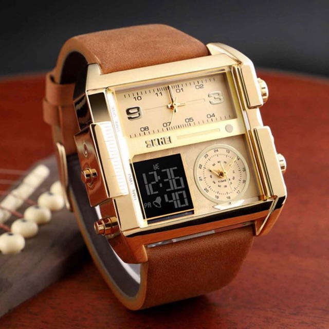 Đồng hồ nam chính hãng cao cấp SKMEI dây da xịn, mặt chữ nhật sang trọng, hiển thị số giờ điện tử và kiểu truyền thống thiết kế đáo